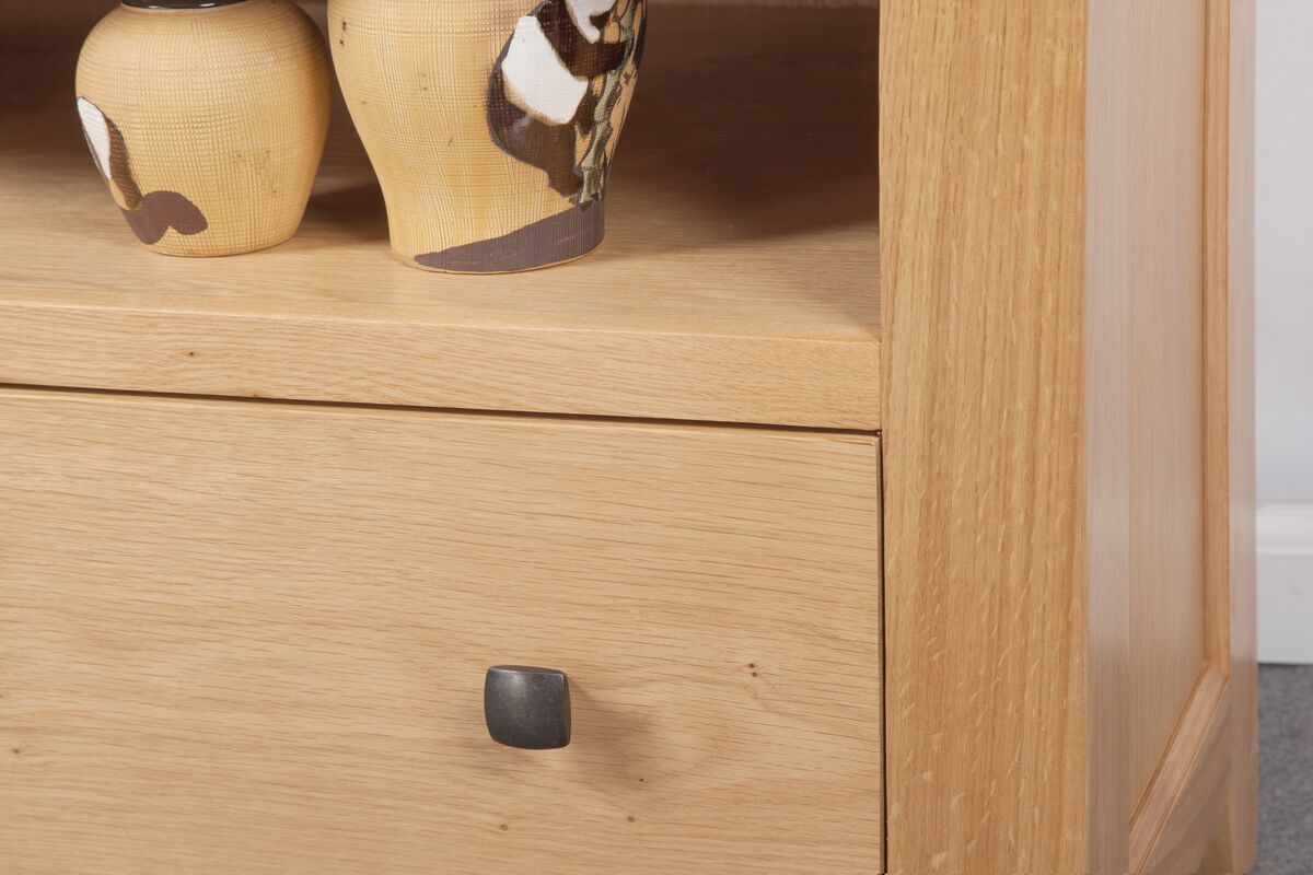 Ce meuble TV d'angle Cotswold est doté d'un tiroir pleine largeur offrant un grand espace pour tous vos équipements multimédia. Avec ses passe-câbles dissimulant câbles et prises disgracieux et son plateau carré épais, ce meuble robuste est idéal pour poser votre téléviseur. Choisissez entre des boutons en bois ou en métal contemporains pour s'adapter à votre pièce. Finition chêne clair. Le tiroir est assemblé par queue d'aronde et doté de chevilles à visser à l'arrière pour plus de sécurité. Ce meuble fait partie de notre gamme la plus vendue. Commandez dès maintenant pour une livraison rapide.
