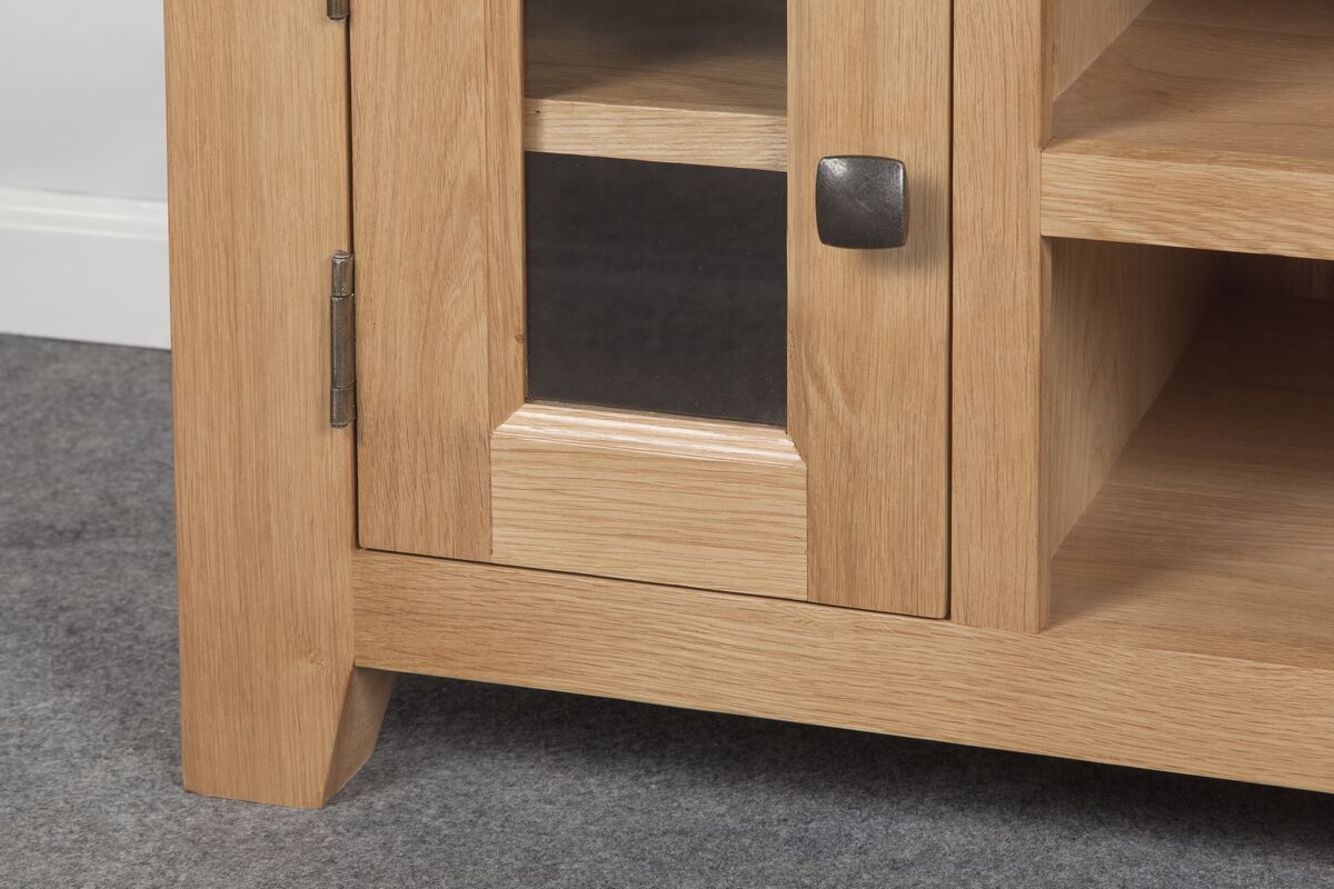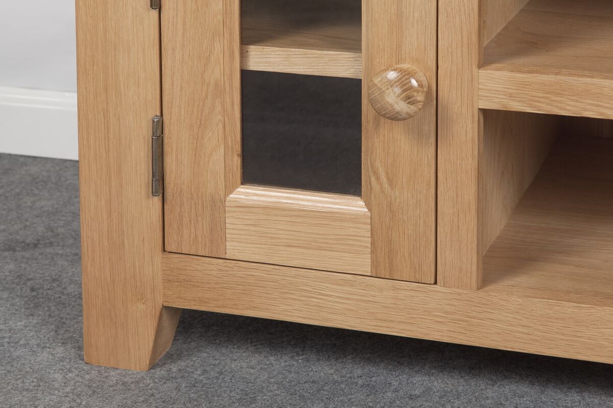 Notre petit meuble TV Cotswold est proposé en finition chêne clair et propose un choix de boutons en bois ou en métal contemporains sur la porte vitrée, pour s'adapter à votre pièce. Avec son plateau massif et épais et son grand espace central pour vos câbles et votre décodeur satellite, ce meuble est un modèle attrayant et populaire parmi nos meilleures ventes. Commandez dès maintenant pour une livraison rapide.
